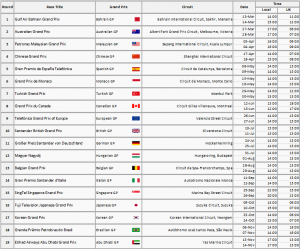 I’ve made a printable calendar for the Formula 1 2010 season. Click below to download it and stick on your fridge!